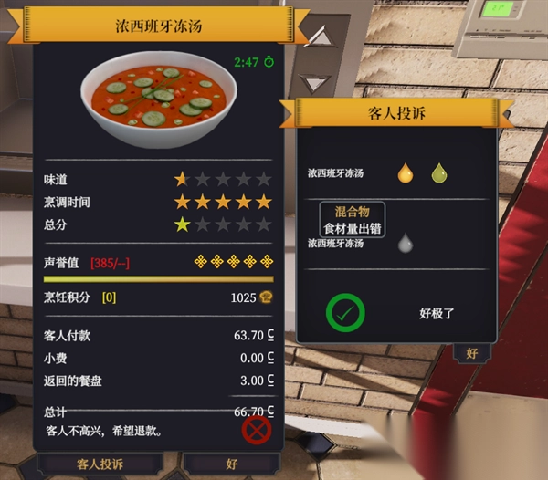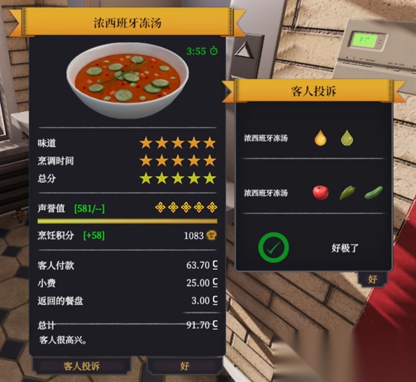 在《料理模拟器》游戏里,不少玩家依照菜谱制作浓西班牙冻汤这道料理,无论怎么做,都无法得到5星评价。究竟有什么办法能让浓西班牙冻汤拿到5星评价呢?接下来,咱们就一同瞧瞧吧。