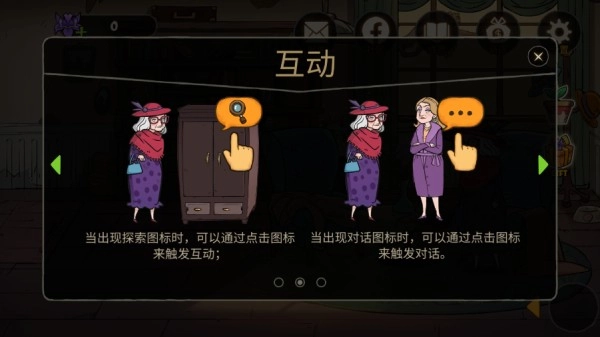 2、在靠近可交互的物品或人物时会出现交互图标,点击进行交互;