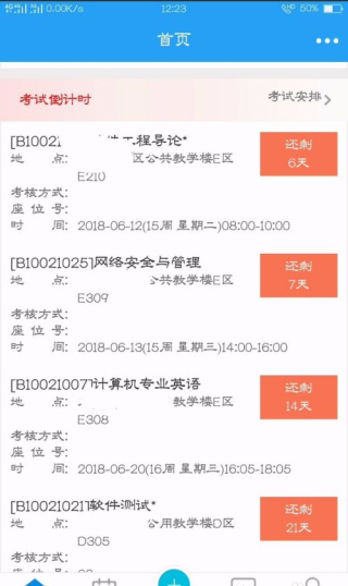 3、如果是在考试阶段,我们还可以看到考试安排和倒计时,时刻提醒我们