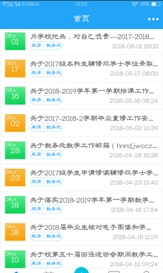 4、在首页,我们还能看到学校和院里平时发布的各类通知,便于接收学校相关信息。